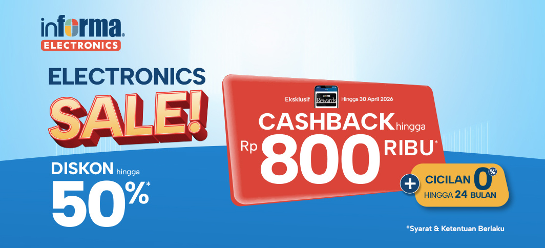 Upgrade elektronik rumahmu di INFORMA Electronics dapat cashback hingga Rp 800 Ribu*.