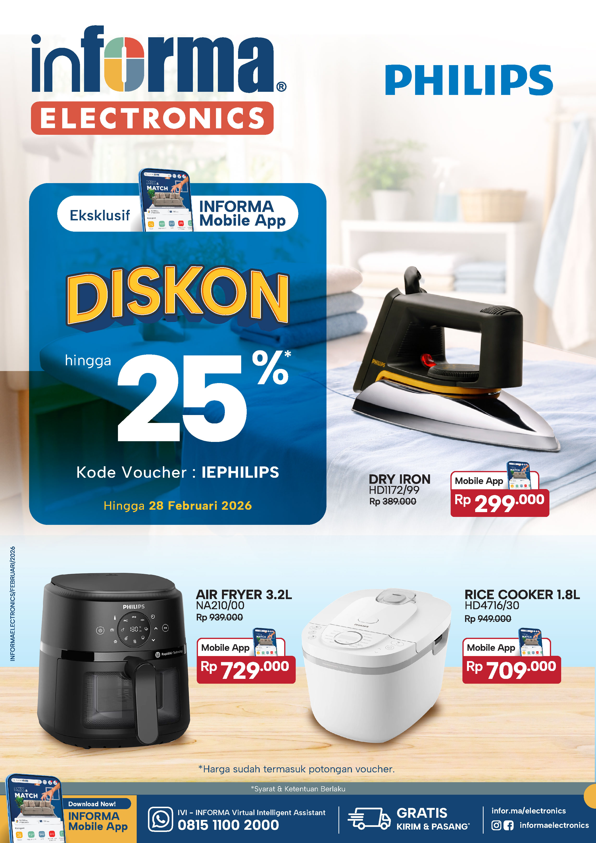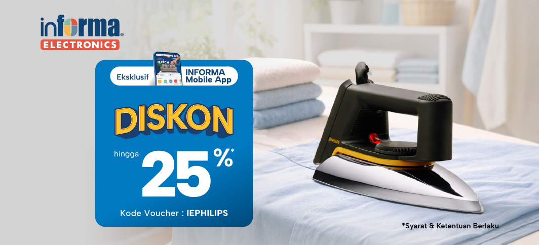 INFORMA Electronics kasi diskon hingga 25%* untuk pilihan elektronik Philips, mulai dari setrika sampai alat masak!