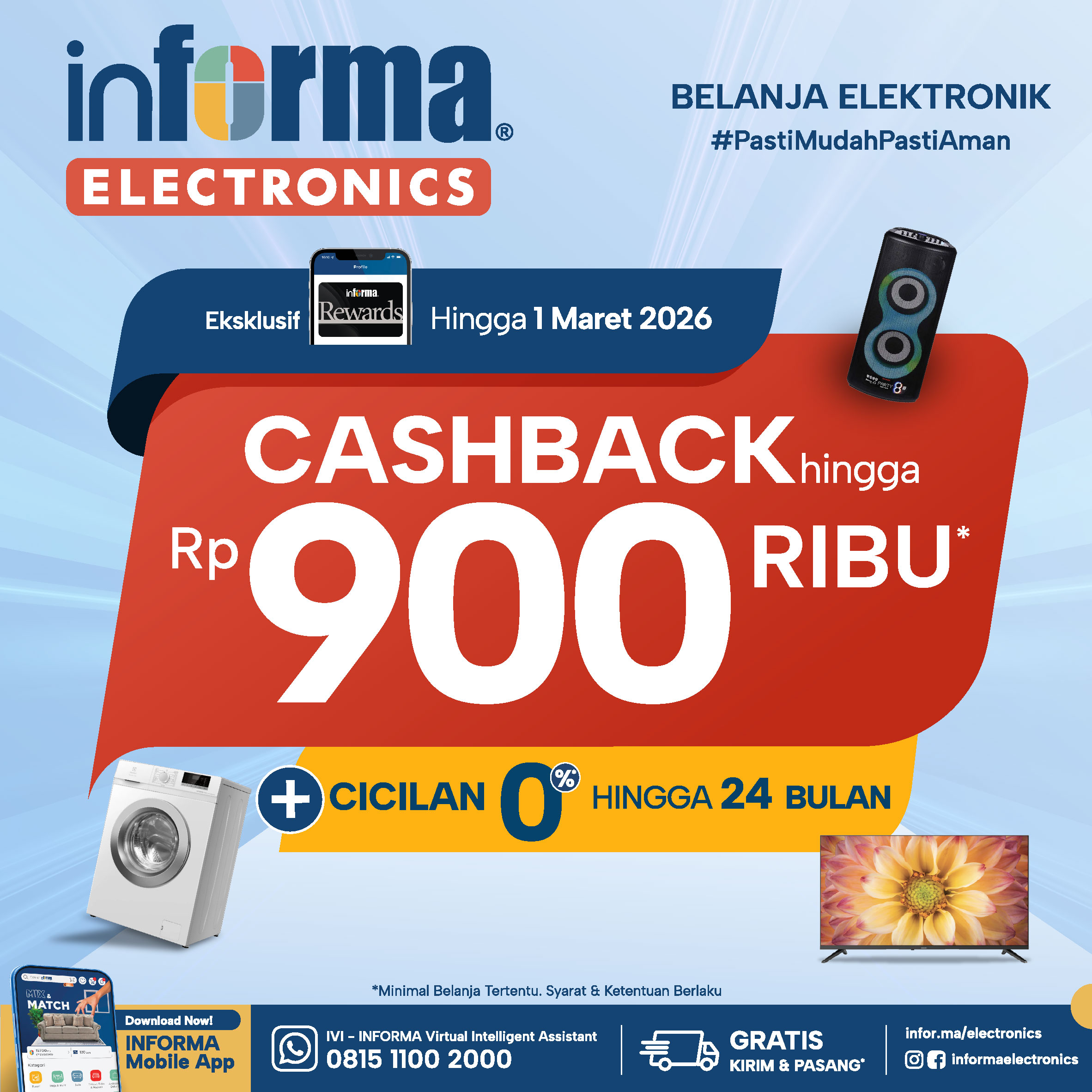 Belanja elektronik pakai Member INFORMA Rewards bisa dapat Cashback hingga Rp 900 Ribu*.