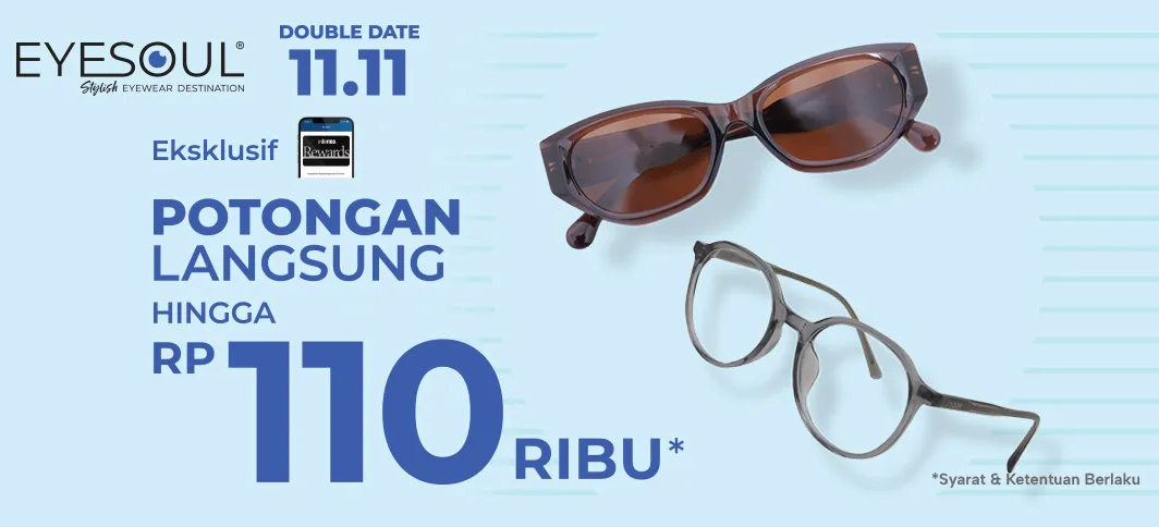 Kamu bisa dapet potongan Langsung hingga Rp 110 Ribu* kalau beli kacamata stylish dari EYE SOUL. Gimana caranya :