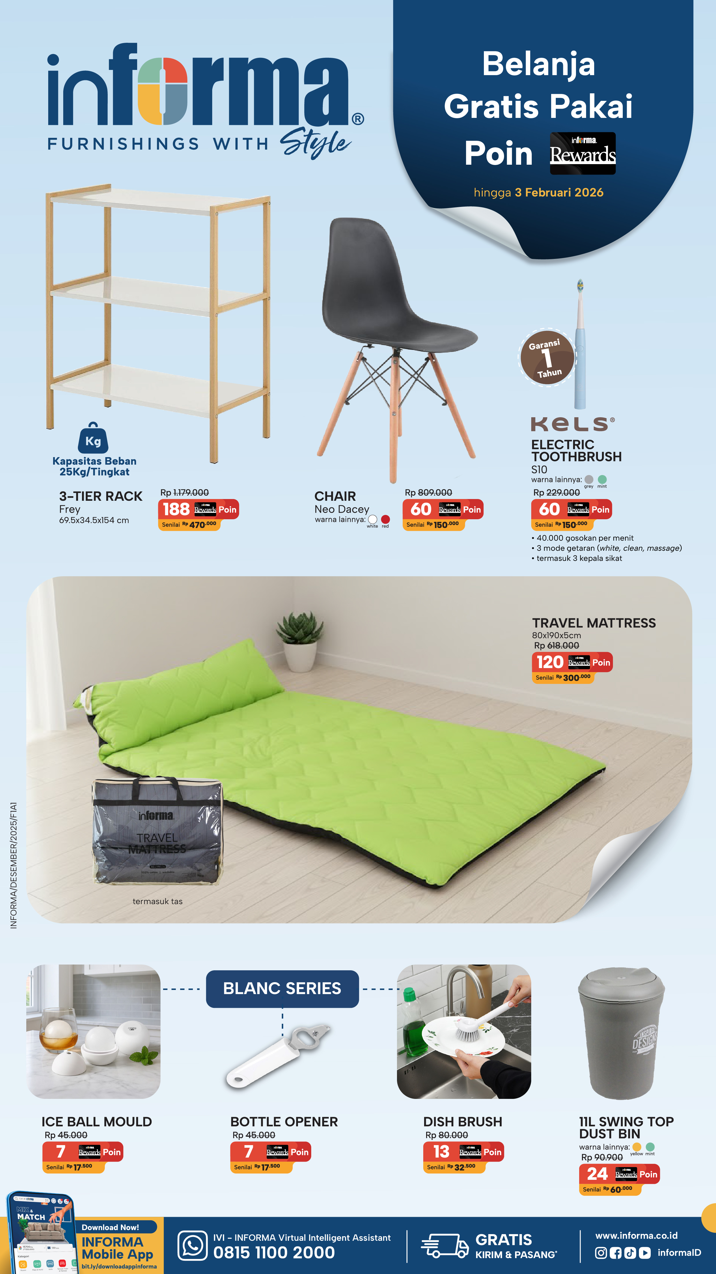 Bawa pulang ragam produk INFORMA secara gratis dengan tukar poin rewards membermu.