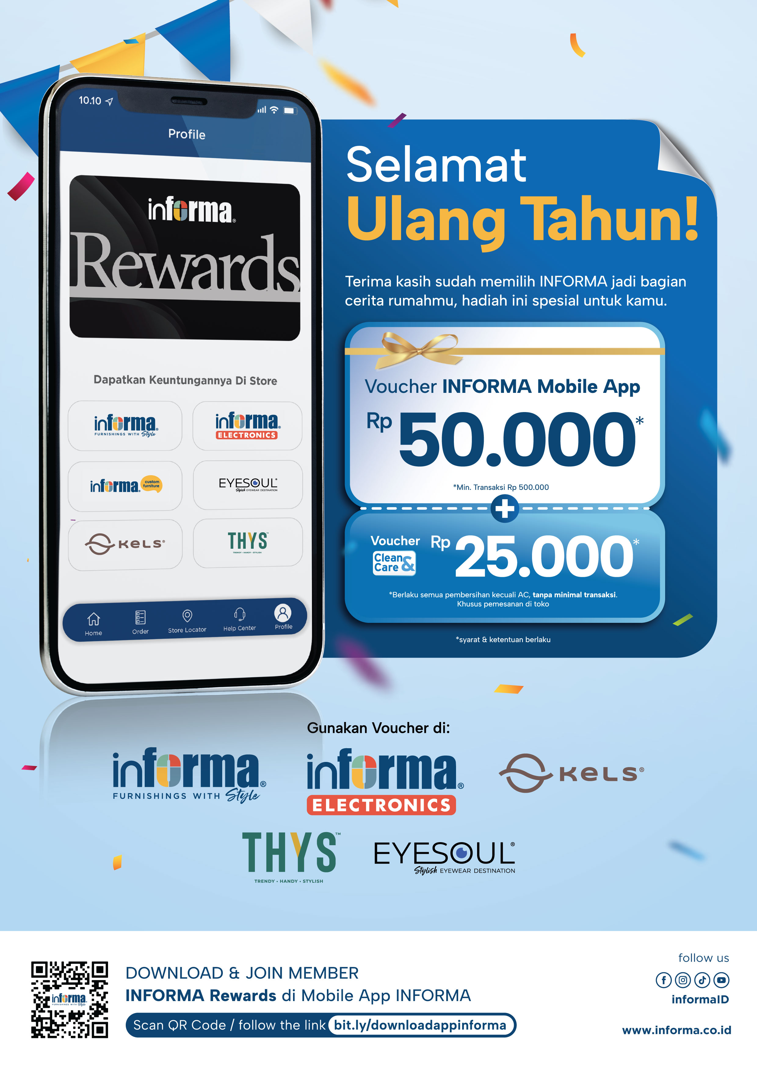 - Birthday Rewards berlaku di INFORMA App dan penggunaan Voucher harus Check in Store